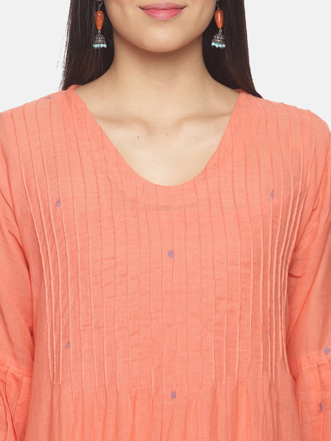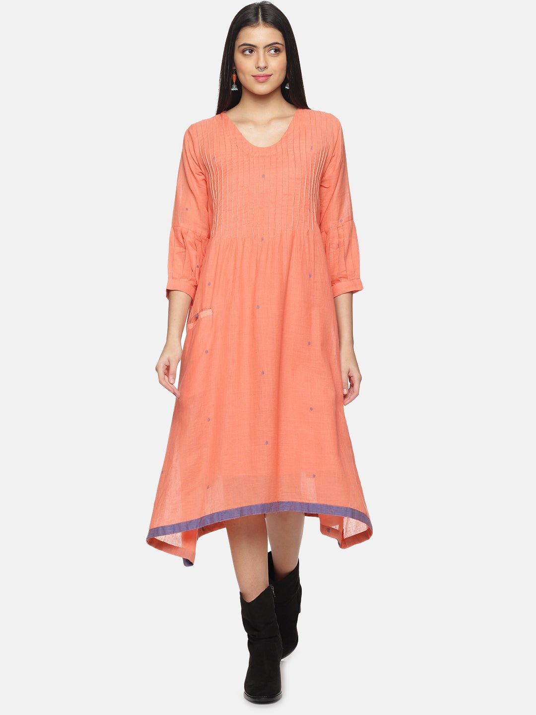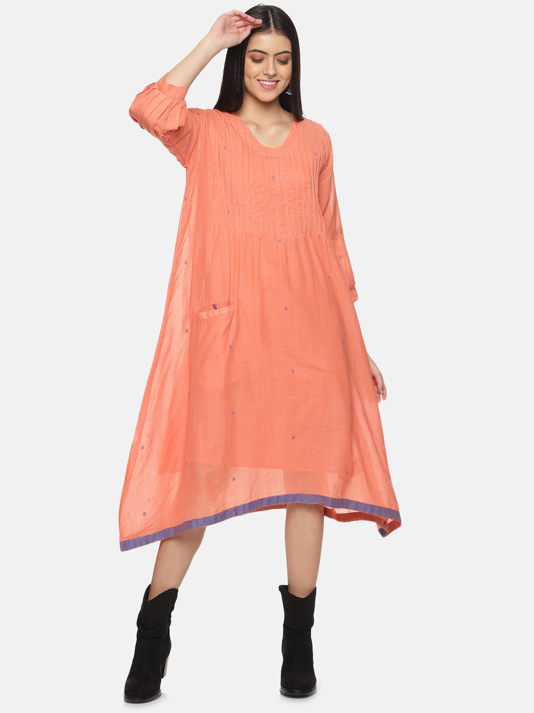 Look as sweet as a peach in our pintex Handloom Jamdani dress.