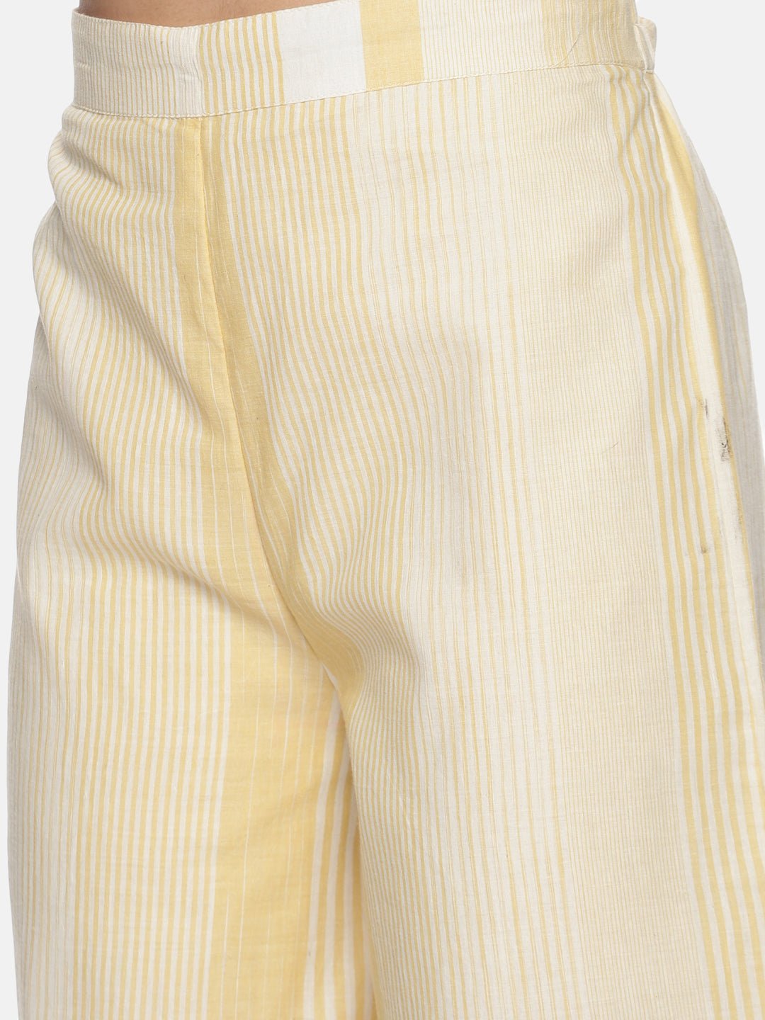 It comes with straight cut trousers in a combination of royal yellow and white stripes. The trousers have an elastic back for better fit. Wear this duo on any occasion and look gorgeous as ever.